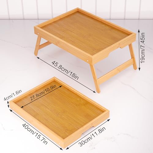 Specification: 2 Pack Bamboo Bed Tray Table with Folding Legs,Breakfast Trays,Serving Tray for Food and Snack,Laptop Trays for Working(Natural)