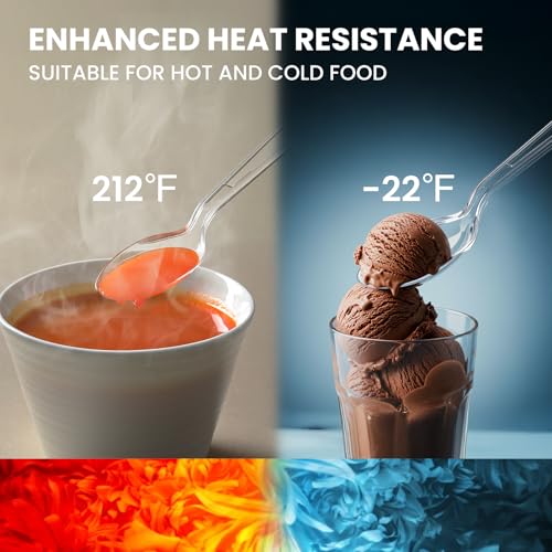 Premium Quality: Crafted from heavy-duty, food-grade plastic, these crystal-clear utensils are 100% BPA-free, toxin-free, and heat-resistant (-22°F to 212°F). Ideal for hot soups, cold desserts, and dense foods, they ensure safety and durability without bending or breaking.