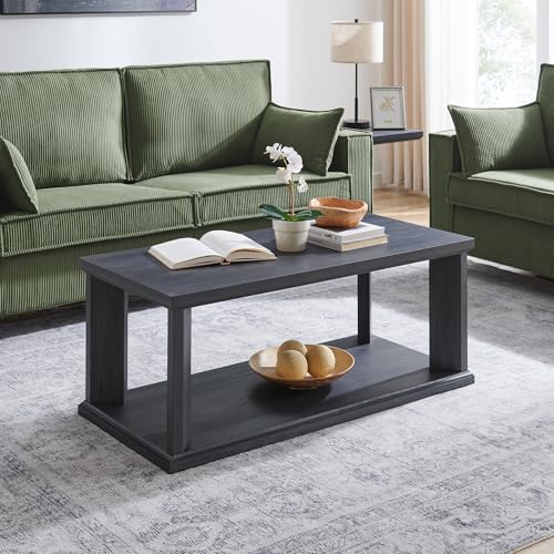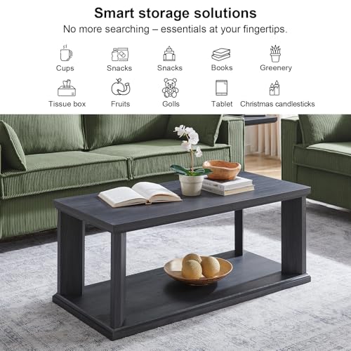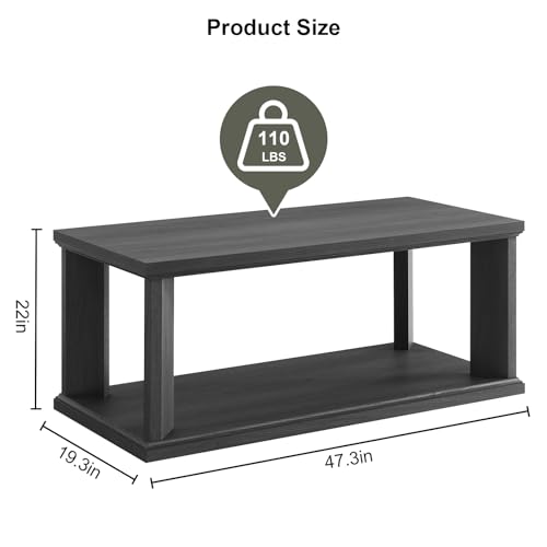 Specification: 48“ Coffee Table, Wooden Center Table with 2 Tier Storage Shelves, Rectangular Living Room Table Modern Farmhouse Coffee Table for Living Room, Home Office, Bedroom, Apartment, Dark Grey