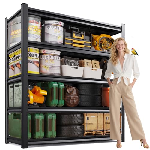 【Quick Installation】The metal garage shelving requires no screws for assembly. The columns and beams feature precision alignment grooves, allowing them to snap into place like building blocks. Simply use the included silicone hammer to gently tap and safe them in place. The garage shelving can also be assembled in just 10 minutes, even by the elderly. When disassembling, simply pull gently to separate the pieces. Whether organizing your garage on the weekend, moving, or storing items, it’s incredibly convenient. The assembly experience is so simple as playing with a puzzle!