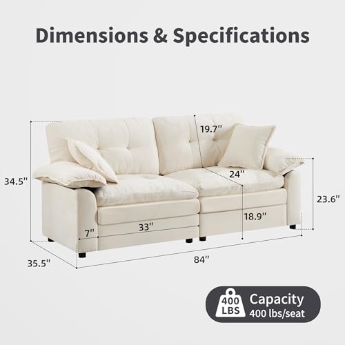 Specification: 84″ Loveseat Sofa, Modern Couches for Living Room,Double-Layer Cushion Cloud Couch with Deep Seat,Super Comfy Chenille Sofas,Sturdy Frame, Easy Assembly for Bedroom, Apartment, Office, Beige