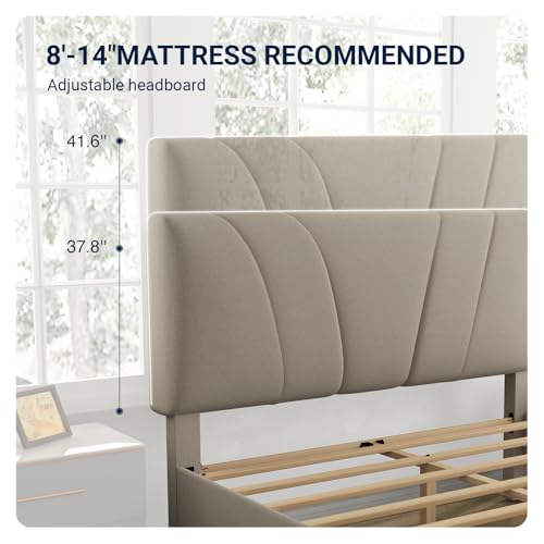 ADJUSTABLE HEADBOARD: This upholstered bed frame features an adjustable headboard that ranges from 37.8″–41.6″, fitting mattresses 8″–12″ thick. Make a choice your ideal height for comfort and beef up whether you prefer a sleek brand new look or a cozy layered setup.