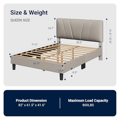 Specification: Avenco Queen Bed Frame, Upholstered Platform Bed Frame with Adjustable Headboard, Wood Slat Support, Easy Assembly, No Box Spring Needed, Beige
