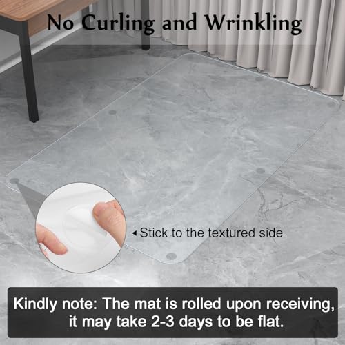 Specialized Designed: Only designed for hard floor surfaces. Not suitable for using on any carpets. The office chair mat protect the hard floor scratching and damaging by chair casters. KINDLY NOTE: THE MAT IS ROLLED UPON RECEIVING, IT MAY TAKE 2-3 DAYS TO BE FLAT.