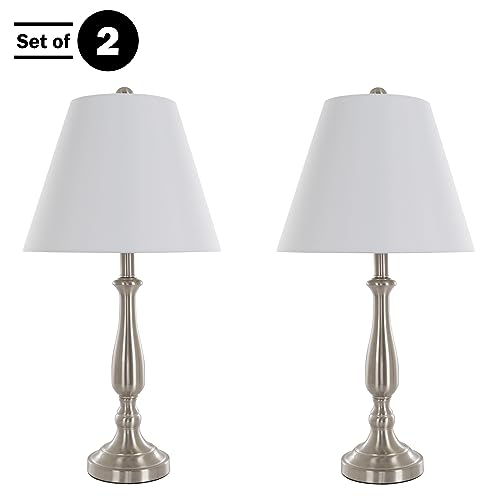 The Table Lamps for Living Room Set of 2 by Lavish Home will instantly become your space with stylish form and energy-efficient function. These brushed steel candlestick lamps provide warm ambient lighting for your entryway, bedroom, living room, or home office. This LED lamp set includes two energy-saving replaceable bulbs, or You’ll choose to use incandescent bulbs up to 100-watts. The traditional style of these living room, buffet, or bedside lamps will complement plenty of home décor styles as they add warm ambiance to any room of your home.
