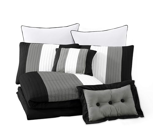 Specification: Chezmoi Collection Loft 8-Piece Luxury Striped Comforter Set (Queen, Black/Gray/White)