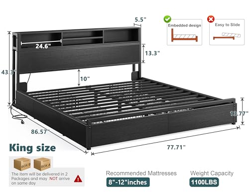Specification: EnHomee King Size Bed Frame with 6 Storage Drawers King Bed Frame and Headboard, Storage Bed with Charging Station, No Noise,No Box Springs Needed,Black