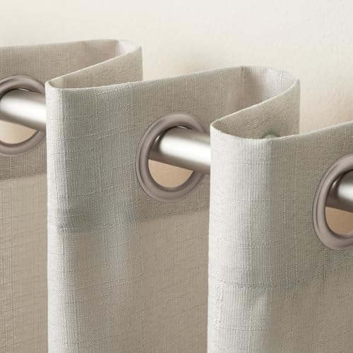 Add sophistication to your décor with the Exclusive Home Loha Light Filtering Grommet Top curtain panels. The solid colored linen look curtain panels have soft woven construction and are a simple way to add a touch of style to any room. Loha curtain panels are constructed with matte silver grommets that may be hung on a curtain rod up to 1.25″ diameter. These curtain panels are ideal for any living room, bedroom, family room, dining room, bathroom and office.
