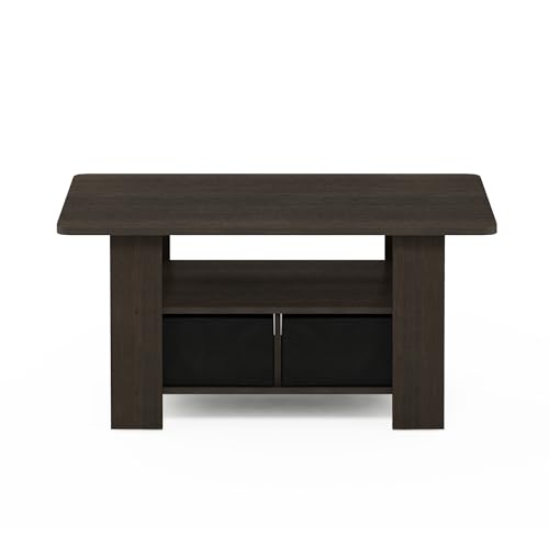 Furinno Coffee Table with Bins, Dark Brown/Black