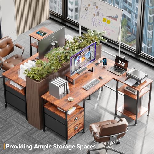 Upgraded Fabric File Drawer: This L-shaped desk comes with a fabric storage drawer, a file cabinet and two-tier storage shelves, providing ample space for storing letter, A4 and legal size files. The drawers are made of high-quality, lightweight, breathable, dust-repellent non-woven fabric.