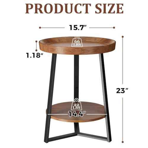 Specification: Gadroad Round End Table with Storage Shelf, 2 Tier Farmhouse Side Table Nightstand for Living Room, Bedroom, Wood Tabletop & Black Metal Frame, Brown 15.7 * 15.7 * 23.0inches