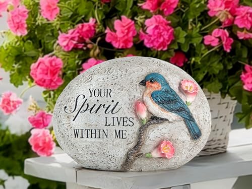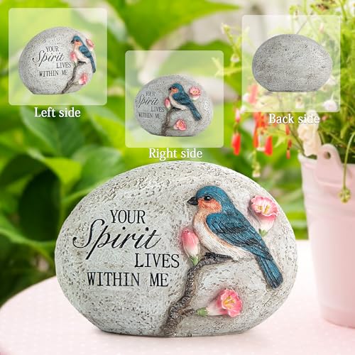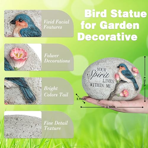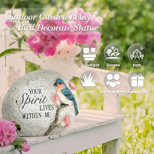Garden Decor for Bird: Our garden statue size is 6.3*2.9*4.5 inch & item weight 0.4LB. The Garden stone is handcrafted with a bird and flowers.”Your spirit lives within me” is full of inspiration, very suitable for outdoor decoration.