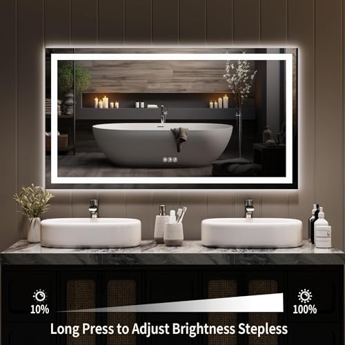 Specification: GarveeHome 50×28 LED Bathroom Mirror with Lights, Dimmable, Anti-Fog, Backlit + Front Lit, Smart Bathroom Vanity Mirror for Wall, Memory Function, Shatter-Proof (Horizontal/Vertical)