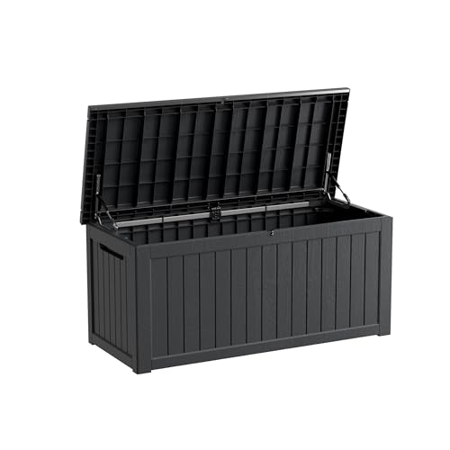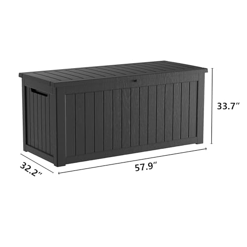 Specification: Heavy-Duty 270 Gallon Waterproof Deck Storage Box, Outdoor Storage for Garden & Patio, Lockable Resin Storage Chest for Pool Accessories, UV-Resistant, Onyx Black