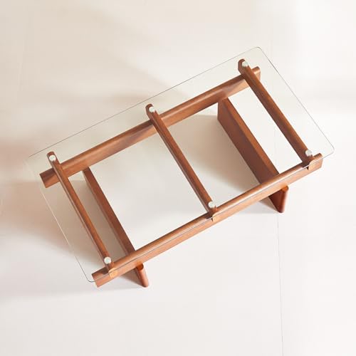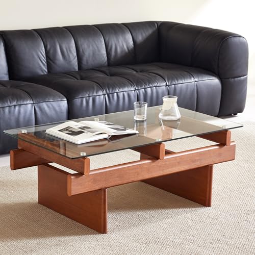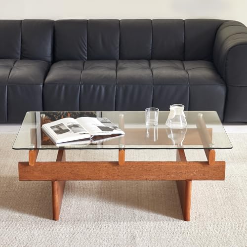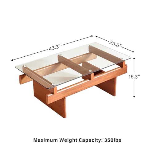 Specification: IWOOD Glass Coffee Table for Living Room,100% Solid Wood Coffee Table with Rectangular Tempered Glass Top,Mid Century Modern Coffee Table,Walnut