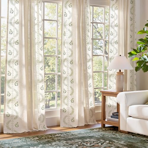 Specification: jinchan Belrose Linen Curtains for Bedroom Floral Curtains 84 Inch Length Linen Blend Sage Green Embroidered Drapes Farmhouse Flower Patterned Drapes for Living Room Window Treatments Set 2 Panels