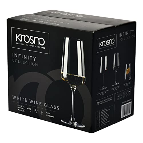 Specification: Krosno White and Sparkling Wine Glasses, 6 piece set, 13.52 oz, Infinity Collection, Elegant, Crystal Glass, Lead-free Glass, Dishwasher Safe, Made in Europe