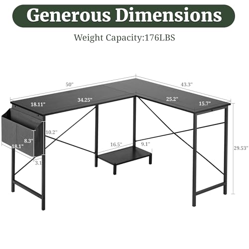 Specification: L Shaped Desk, 50 Inch Reversible Computer Desk Corner Gaming Table with CPU Stand & Storage Bag, Sturdy Metal Frame PC Workstation for Home Office