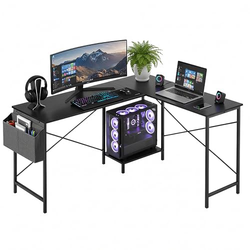 L Shaped Desk, 50 Inch Reversible Computer Desk Corner Gaming Table with CPU Stand & Storage Bag, Sturdy Metal Frame PC Workstation for Home Office