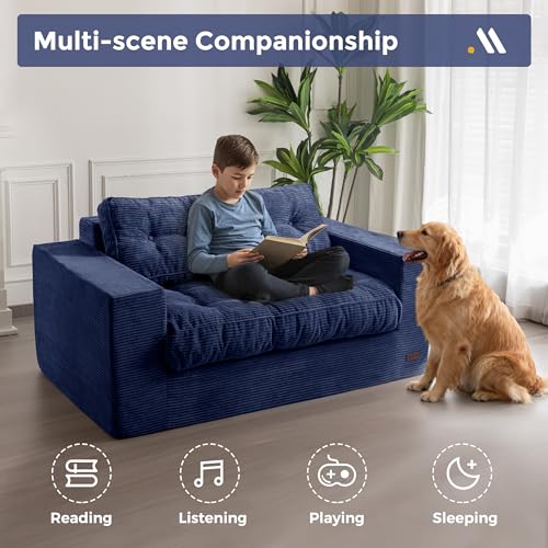 Specification: MAXYOYO Bean Bag Chair for Adults, Upholstered Floor Sofa with Armrests, Loveseat Boneless Couch with Tufted Cushion & Backrest, Sofa in A Box, Large Bean Bag Couch for Bedroom Living Room, Navy