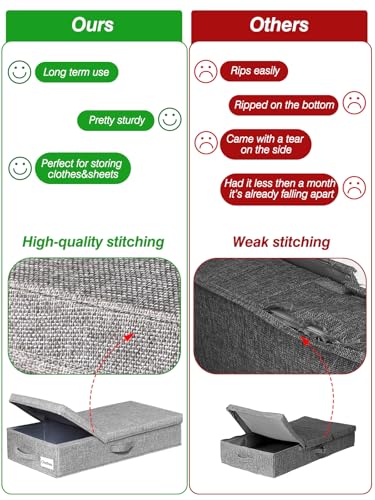 STURDY STRUCTURE & STURDY HANDLES: 3 Reinforced sewn-in handles make it easy maneuverability and convenient so that you can carry and pull out from under the bed; handy bins make excellent blanket organizers and storage; Lasts longer than underbed storage containers plastic; Keep your bedroom neat and tidy with storage bins with lids that fit your room’s existing decor and theme