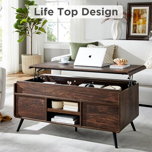 Specification: RedLemon 48″ Lift Top Coffee Table with Slatted Sliding Door, Mid Century Modern Center Table with Hidden Storage Compartment,Lifting Tabletop & Adjustable Shelf for Living Room, Office, Dark Walnut