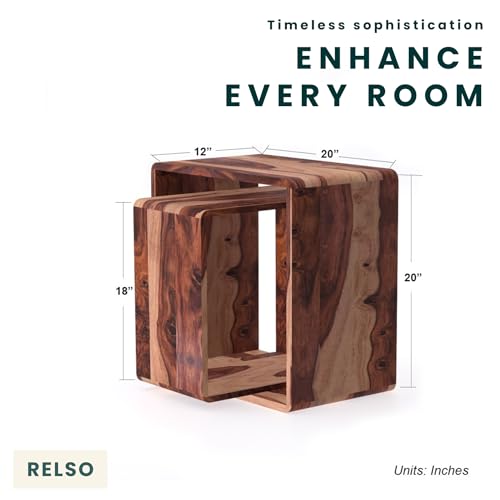 Specification: Relso Cascade Nesting Tables for Living Room with Premium Sheesham Wood Construction | Nesting End Tables with Smooth Curved Edges for Safety and Sophistication | Solid Wood Nesting Tables Set of 2