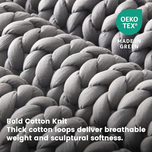SLEEP ZONE Weighted Blankets for Adults – Chunky Knit Blanket, Cotton Hand Made Heavy Blankets, Cooling Weighted Blanket – Breathable, Machine Washable (Grey, 6 lbs, 40″x50″)