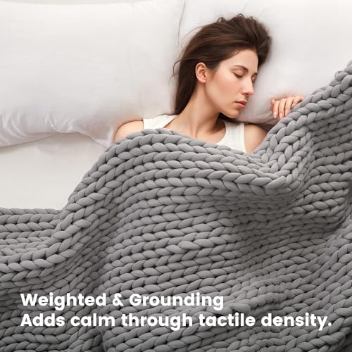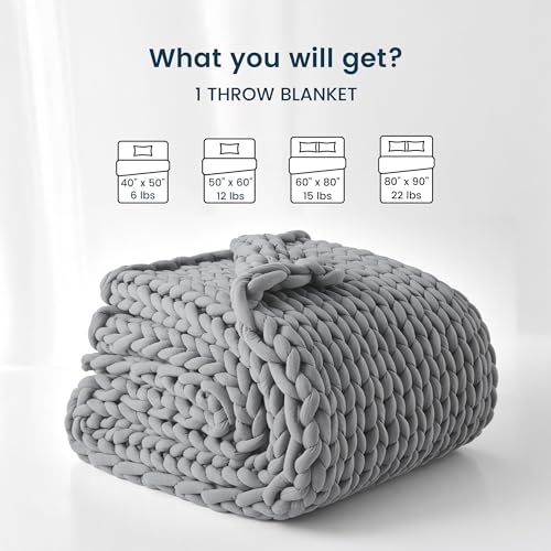 Specification: SLEEP ZONE Weighted Blankets for Adults – Chunky Knit Blanket, Cotton Hand Made Heavy Blankets, Cooling Weighted Blanket – Breathable, Machine Washable (Grey, 6 lbs, 40″x50″)
