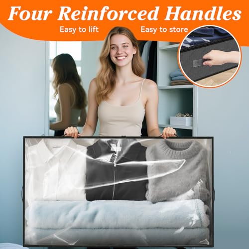 Visible Windows & Reinforced Handles: Our underbed storage bins features a transparent top that allows you to find what you need at a glance. The reinforced handles are sturdy, making it easy to pull out multiple times or move around the house