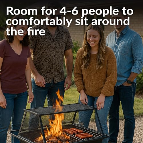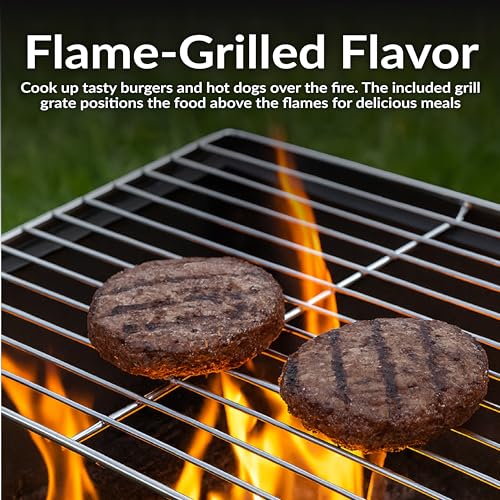 FULL GRILL SET INCLUDED: This heavy-duty fire pit features a durable rectangular chrome cooking grate for serving food, a spark screen for added safety from flying sparks, a poker tool to regulate the flame, and a weather-resistant cover.