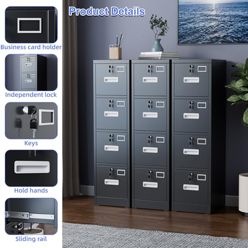 SUXXAN 4 Drawer File Cabinet, Metal Vertical Black Filing Cabinets with Locks Name Card Holder for Home Office, Assembly Required