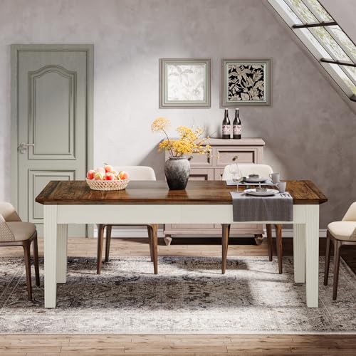 Specification: Tribesigns Dining Table for 4-6 People, 62-Inch Rectangular Kitchen Table with Solid Wood Legs, Modern Farmhouse Dinner Table for Dining Room, Kitchen, Living Room, Rustic Brown & Cream White