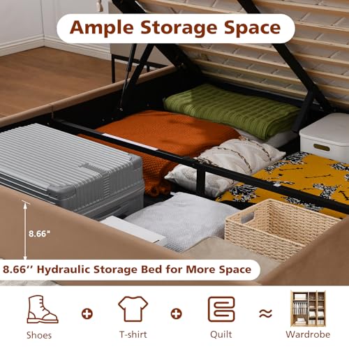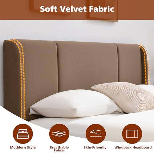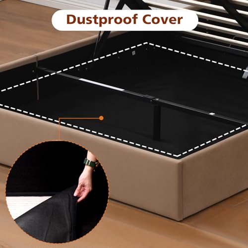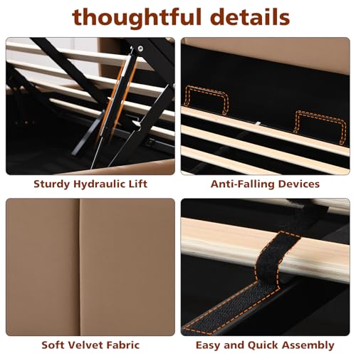 Specification: VELOCAVA Full Size Lift Up Storage Bed, Brown Velvet Upholstered Wingback Headboard, Modern Gas Lift Platform Bed with Spacious Under-Bed Storage, No Box Spring Needed, Easy Assembly