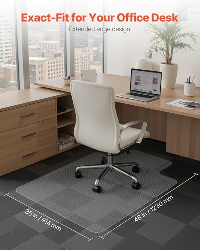 Ideal Fit for Desks: The 36 x 48-inch (915 x 1225 mm) rectangular rolling chair mat features unique extended edges, allowing it to securely fit under your desk and maximize your workspace