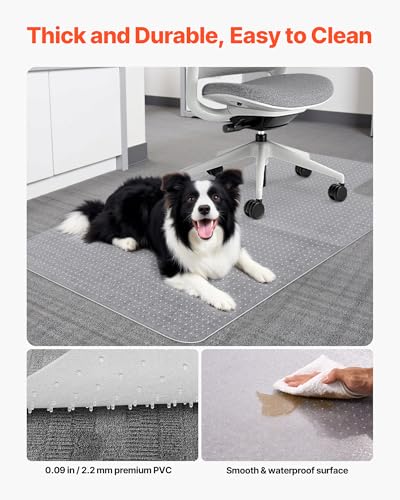 Durable & Easy to Clean: Crafted from 0.09-inch / 2.2mm thick PVC, this under desk rug resists cracking and deformation. The smooth, water-proof surface wipes clean easily—say good-bye to stains and dirt in seconds