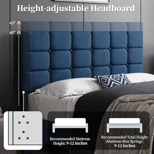 Height-Adjustable Headboard: The headboard of the full upholstered bed frame can be adjusted at two heights (40″ and 43″), and you can adapt it to the optimal height for your needs