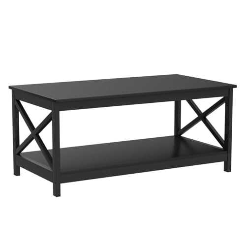 Specification: Yaheetech Wood 2-Tier Black Coffee Table with Storage Shelf for Living Room, X Design Accent Cocktail Table, Easy Assembly Home Furniture, 39.5 x 20 x 18 Inches